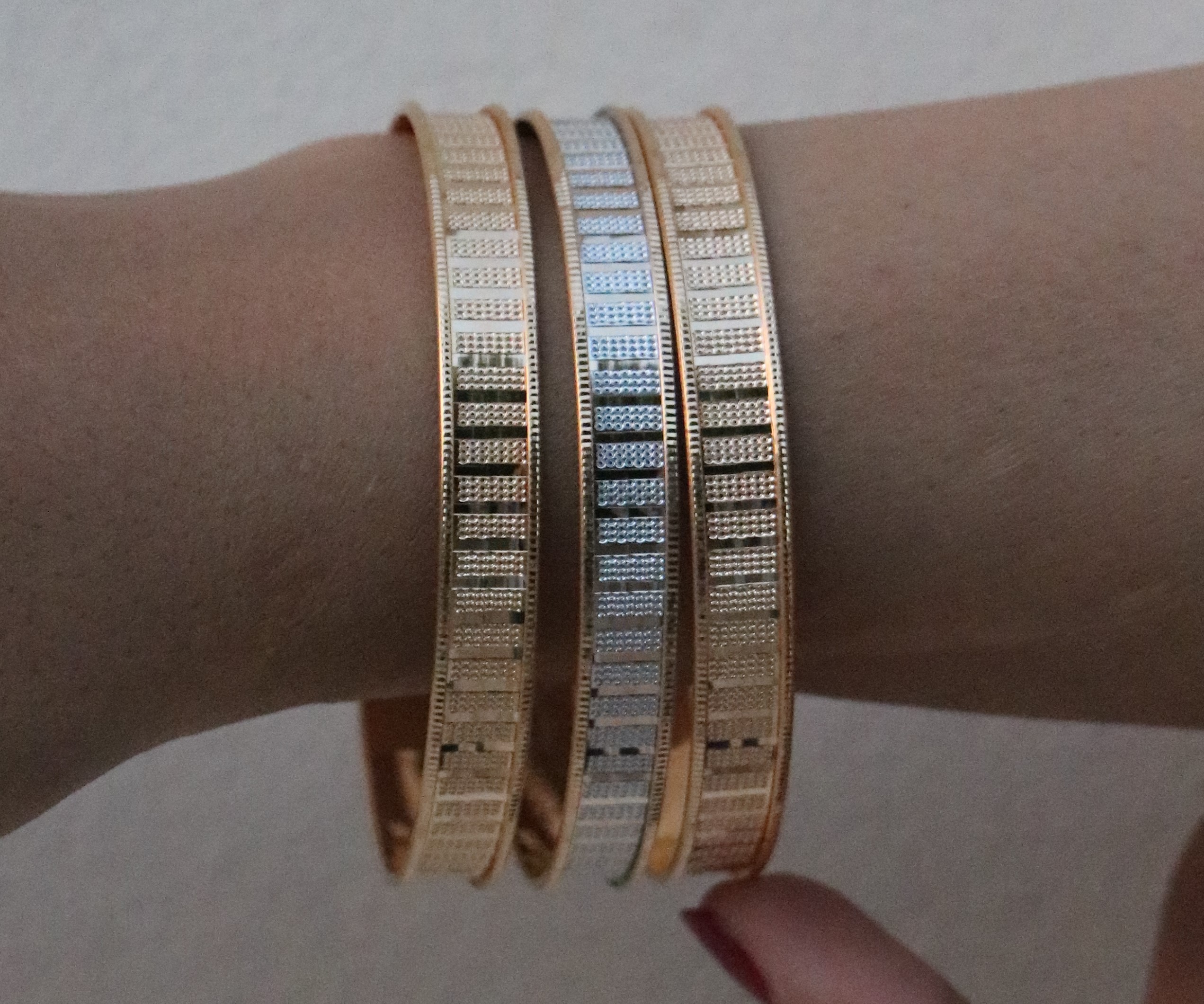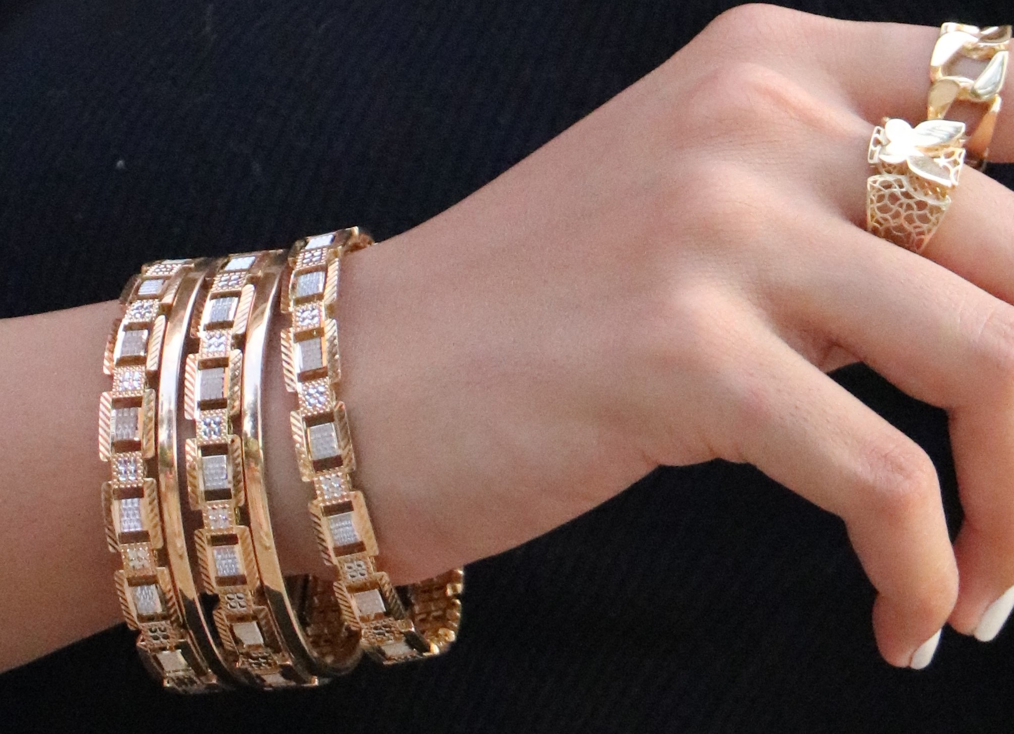 در این روش، طرحهایی مانند گل و برگ با جزئیات زیاد بر روی سطح طلا حک میشوند یا به صورت برجسته اجرا میگردند. این سبک بسیار زنانه و ظریف است.